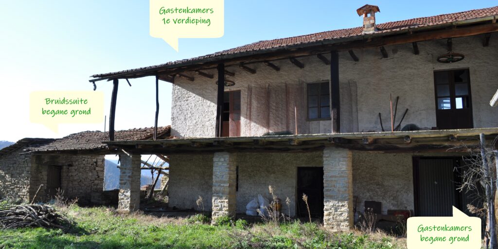 De gastenkamers op de begane grond kenmerken zich door een sfeervolle, originele stenen vloer (afgewerkt met epoxy) en prachtige Romeinse tongewelven. Beide kamers zijn voorzien van koffie- en theefaciliteiten, een minibar en bieden uitzicht op het (toekomstige) zwembad, de uitgestrekte weiden en de omliggende bergen. In de verte ligt het charmante stadje Cortemilia.